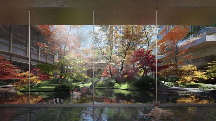 近1000㎡的下沉庭院,更是把苏式园林的精髓搬进了小区,精选乌桕、紫薇等古树名木,四季都有不同的风景,生活在这里,每天都像在度假。
