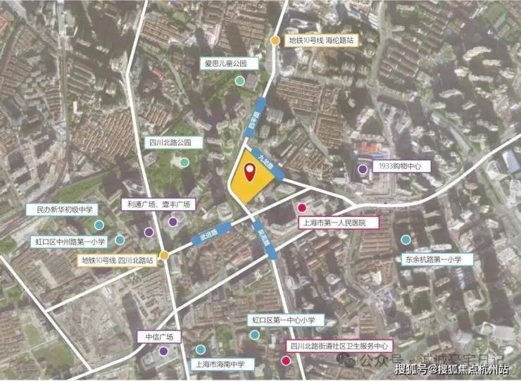 地块属于虹口内环内的嘉兴社区,就在第一人民医院北侧,南侧约200米就是北外滩,北侧即为瑞虹新城,项目直线距10号线四川北路站约400米,是今年虹口区非常重要的一个新房供应。