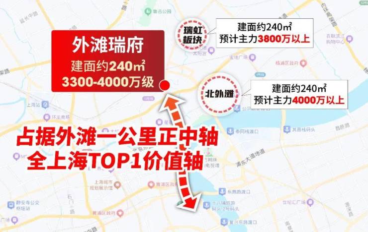 放眼虹口区,北外滩新房均价已至约17.5万/㎡,240㎡户型总价轻松突破4000万;