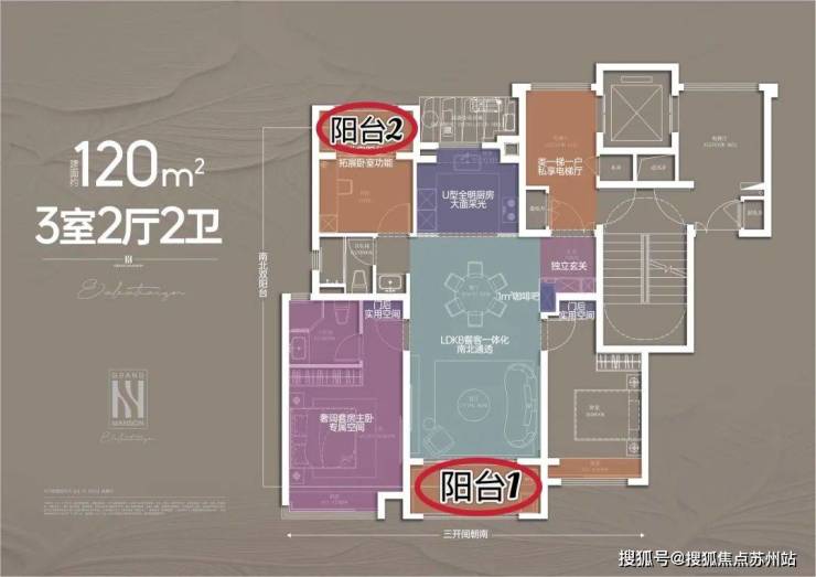 当然,即使抛开3阳台设计,这也是个满分户型。