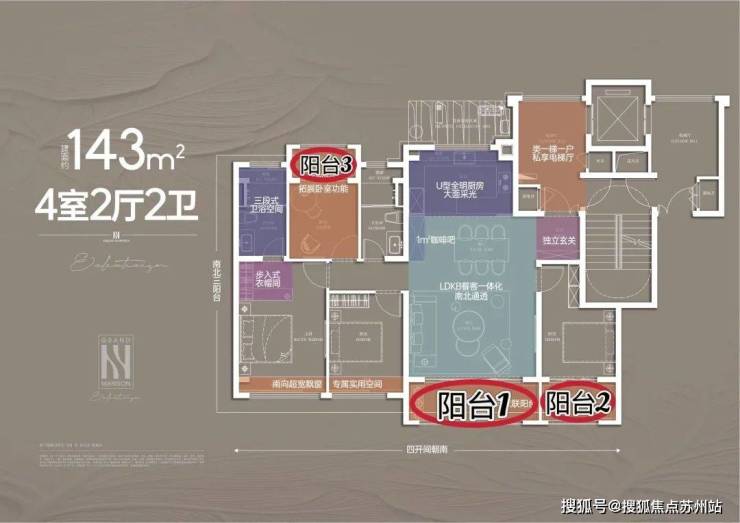 项目建面约143㎡户型做到了3阳台设计,让业主的生活拥有更多可能性和创造性!