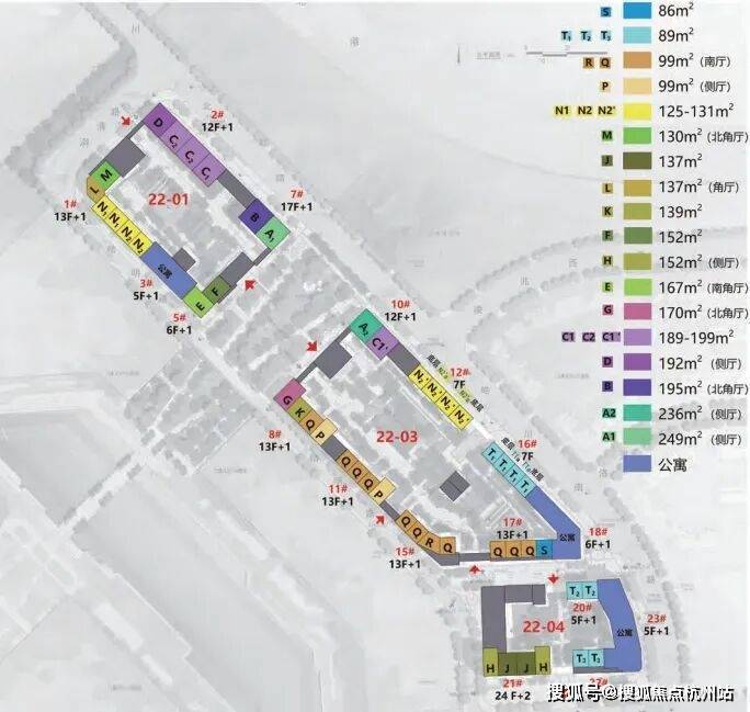 22-01地块容积率3.0,占地面积1.1万平方米,总建筑面积5万平方米,包括4栋住宅楼、2栋商业;