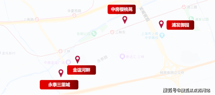 板块内部,由于三林板块规划起步晚,「永泰三里城」周边几乎都是次新电梯房,板块内二手房挂牌均价9万/㎡左右,不少户型较好的楼盘甚至能跑上10w+。