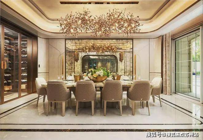 傍晚,在建面约700-850㎡独栋空间的恢弘客厅与餐厅,举办一场彰显身份的私宴。