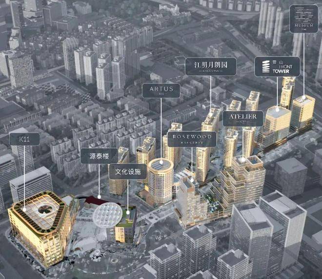 是内地首个汇集新世界旗下K11购物艺术中心、甲级商厦K11 ATELIER、服务式公寓K11 ARTUS、瑰丽酒店ROSEWOOD以及国际社区「江明月朗园」等五大顶级品牌的超级综合体。