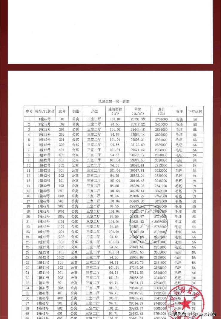 项目一房一价表