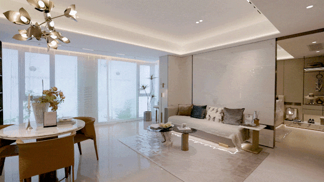 约5.9米超宽横厅设计,这里会是一场奢阔的社交空间,与好友推杯换盏,依旧谈笑风生的自在;也可以是亲子欢乐场,互动、游戏,非凡气度皆凸显无遗。