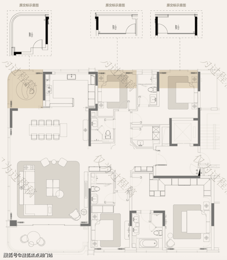 天澜传序府建筑面积约265方的户型,更是直接就做出了大平层,才有的尺度感——
