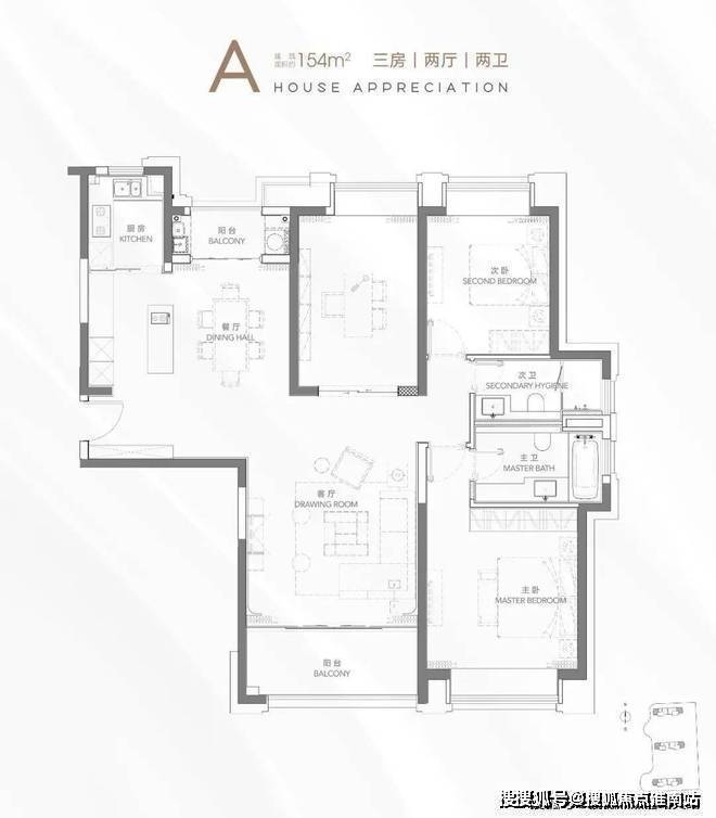 主力户型:2房133㎡、2+1房135㎡、3房150-154㎡