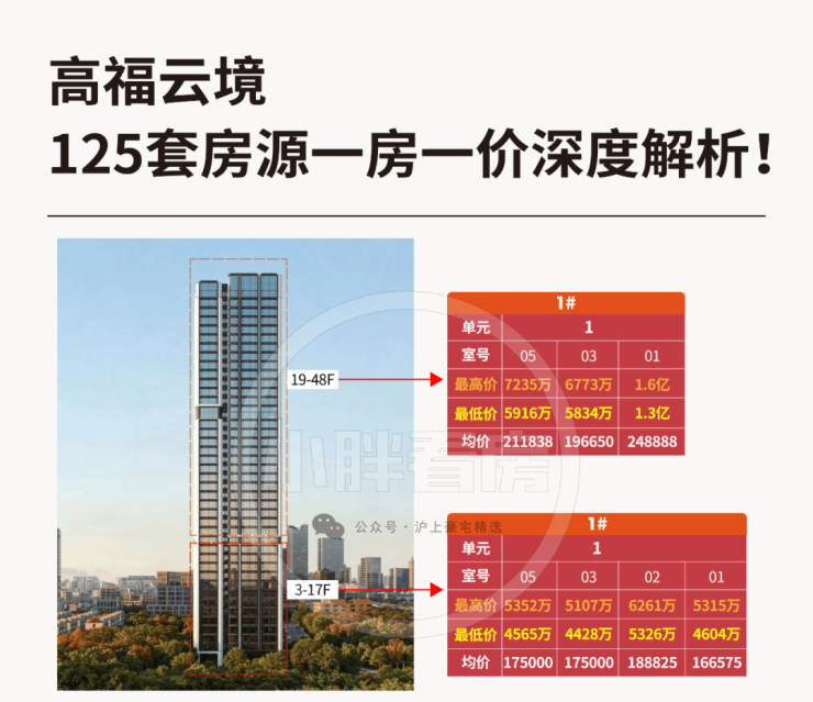 巨富长板块,【高福云境】推出125套建面约289-591㎡超高层住宅,均价21万/㎡.