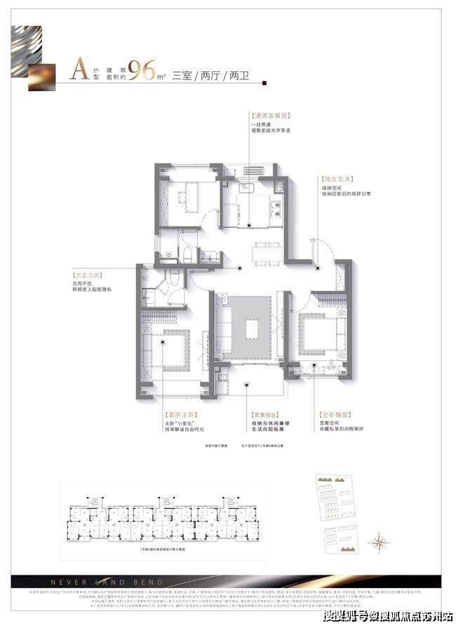 建面约:96㎡ 三房两厅两卫(高层)
