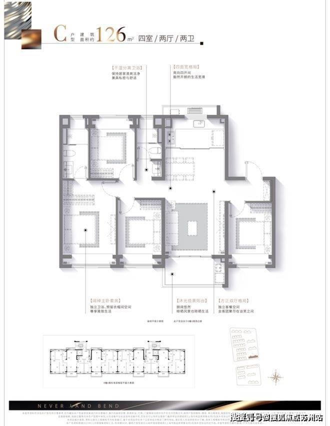 此外,干湿分离卫浴设计+南向套房主卧+全卧飘窗设计,生活舒适度拉满。