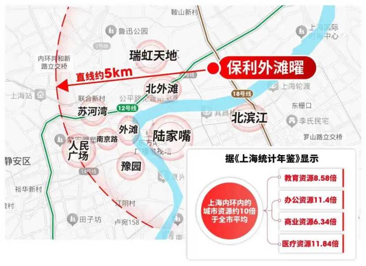 上海顶级文脉、商业地标、交通枢纽与生态绿地,几乎都浓缩在内环,据上海统计年鉴显示,上海内环内资源约是全市平均约10倍。