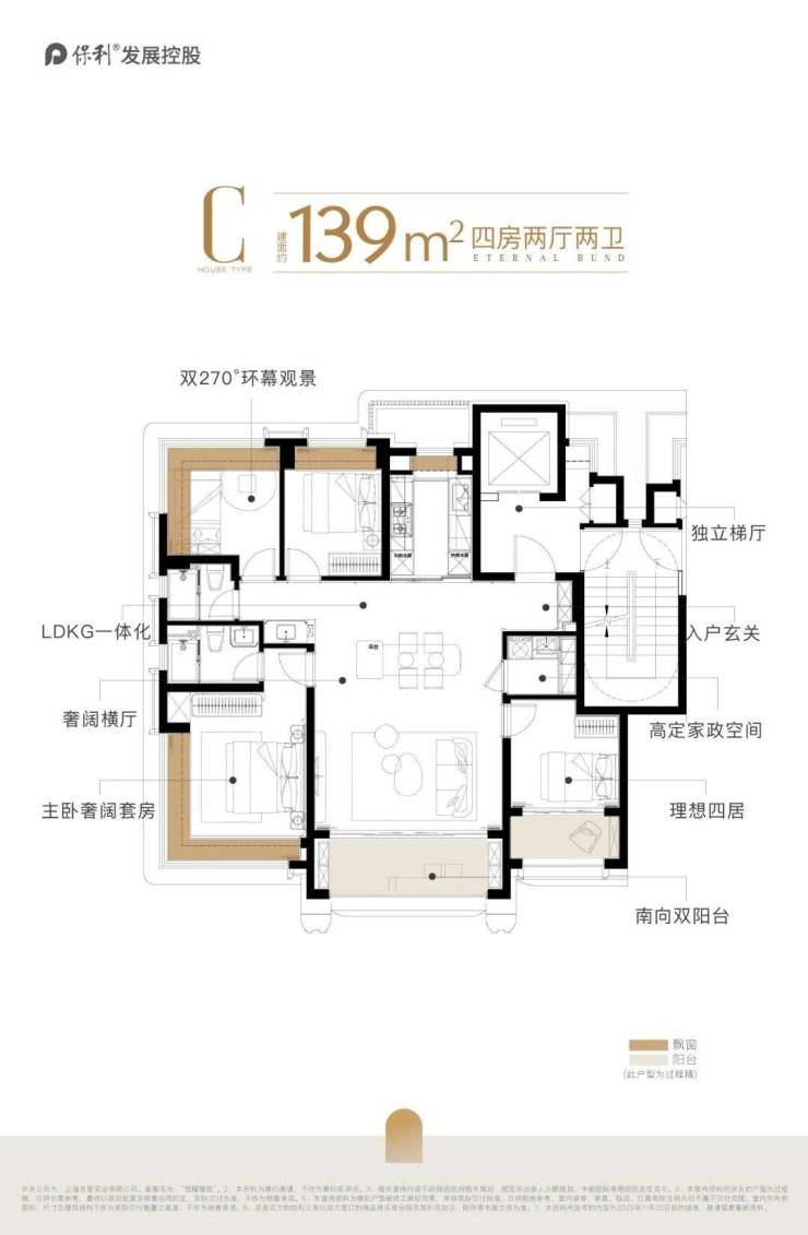 但事实上,保利外滩曜建面约130㎡的实际使用率做到了约94%,双阳台+双约270°视野+一梯一户独立电梯厅+多飘窗。
