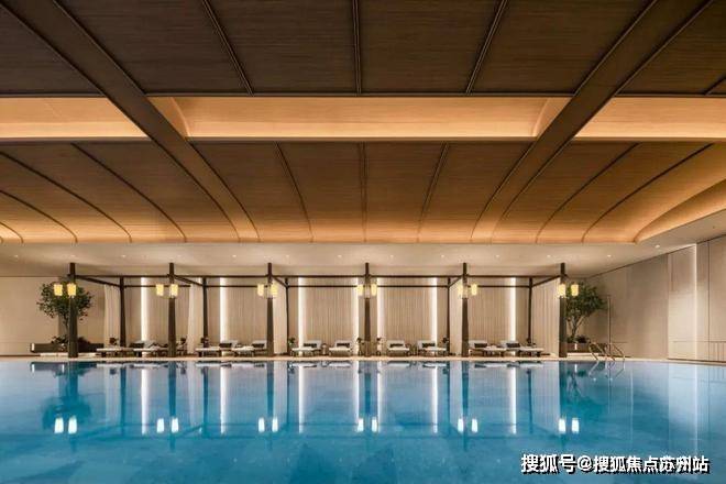 最让我心动的是这个无边泳池!招商序以“室内外自然无界”的设计手法,将无边泳池与庭院美景在视觉上连成一体,当阳光映照跃动的蔚蓝,业主畅游的同时还能包揽庭园诗意;深色木架构撑起白色帏幔,池边躺椅的设计也极具豪华酒店的优雅与尊贵,穹顶则延续着海派穹顶的经典设计元素,以细腻的木纹铝板打造。以往只 在奢华度假酒店的体验在家楼下的会所也能拥有!