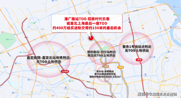 纵观整个北上海的所有400-600万级置业地的轨交站点,还有条件建造TOD、建造直线约150米进站轨交盘的土地,寥寥无几甚至不会再有。