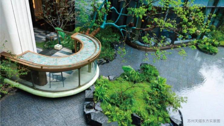 「苏州天熠东方」将 “人文社交·全龄共享”的理念通过架空层的打造得以完美呈现,打破空间隔阂, 以林木、流水的跃动诗意,连接室内外空间,为居于双湖之上的东方雅仕,勾勒一幅曲水流觞、畅叙幽情的清雅之地。