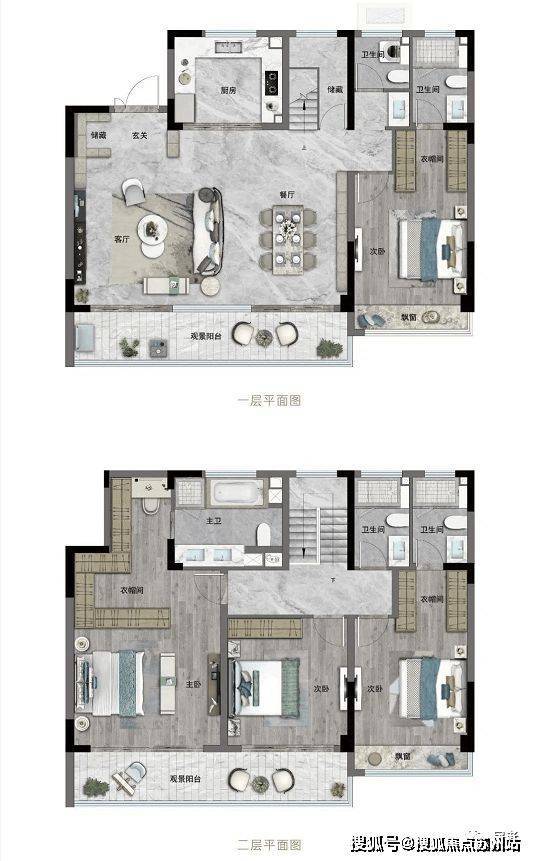两个户型流出,预估面积段在约140/160㎡,全4房设计;层高约3米,具体面积段届时以官宣为准。