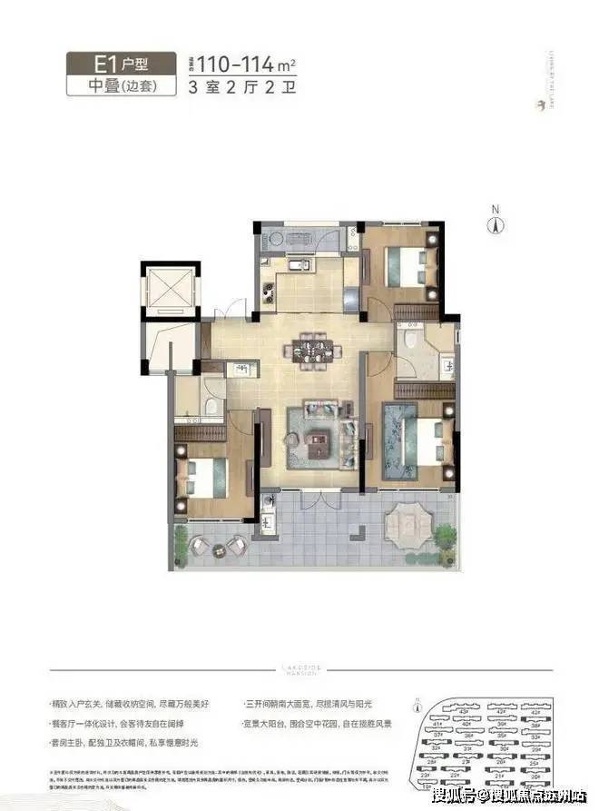 将新亚洲元素植入现代建筑语系,坡屋顶、深挑檐中式元素,采用大面蓝灰色LOW-E玻璃,大面宽、大开间、全明通透的湖景洋房,以“中央空调+新风系统+地暖”全系精装交付,诠释洋房生活的格调。