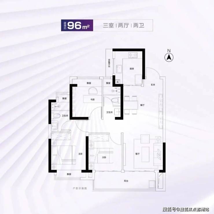 建面约96m²3房2厅2卫
