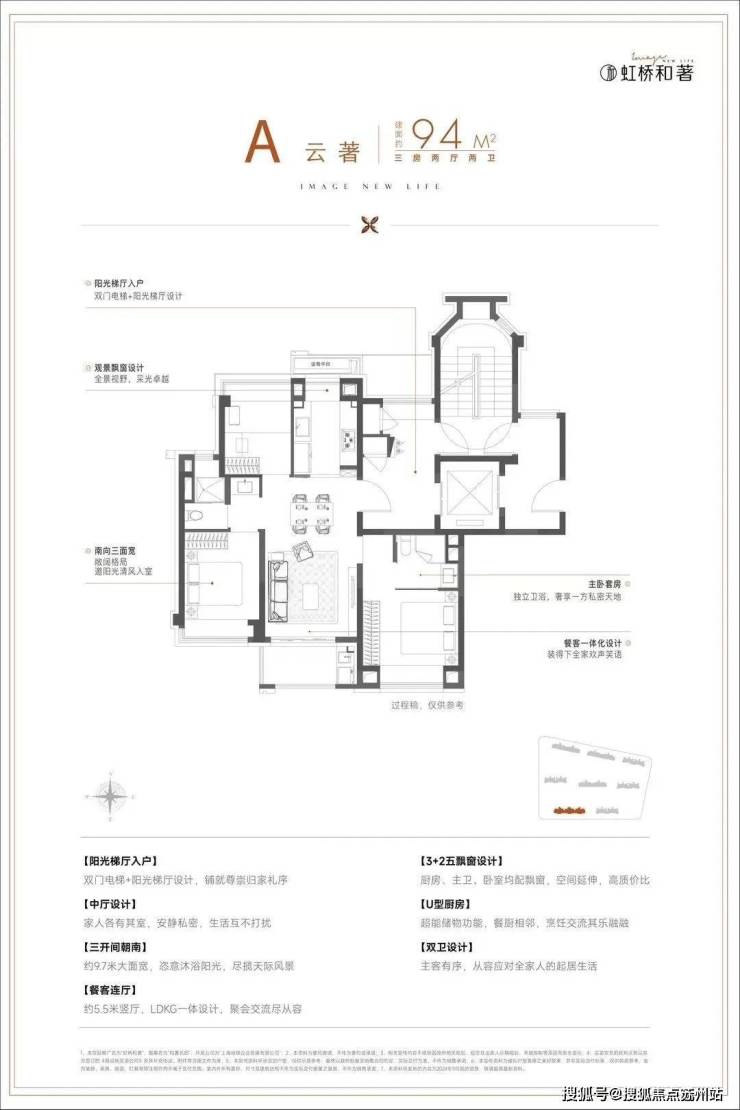 约10.3米的南向面宽+3房5飘窗1阳台,解决采光以及收纳等问题:
