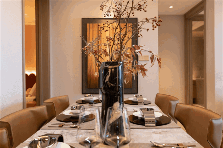 客厅和餐厅空间都十分开阔,用餐和休息互不打扰.