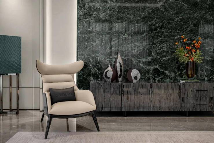 项目推出了建筑面积约460㎡【领潮】和410㎡【湾潮】两大户型,采用大面积装饰温润质朴的木饰面,挥毫泼墨的写意奢石,意境超凡的玉纹绿大理石,沉稳矜贵的古铜拉丝金属线,共同烘托充满艺术真意的生活场境。