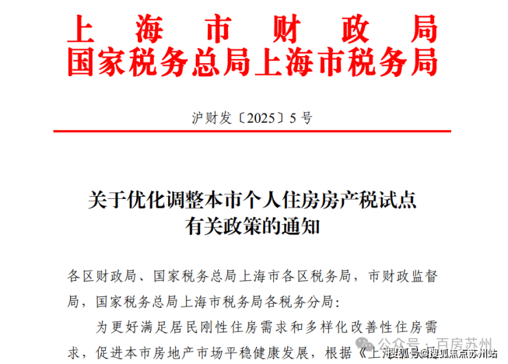 上海市财政局和国家税务总局上海市税务局今日联合发布《关于优化调整本市个人住房房产税试点有关政策的通知》,推出三项具体措施优化个人住房房产税政策。