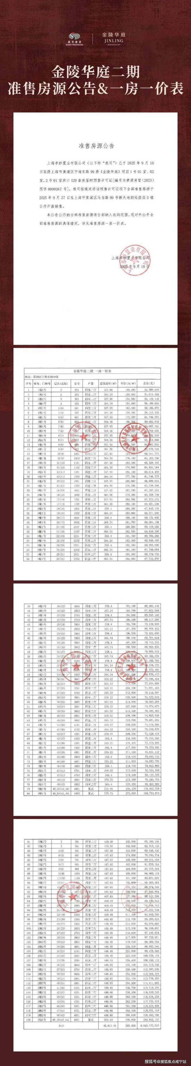 【金陵华庭】一期一房一价表