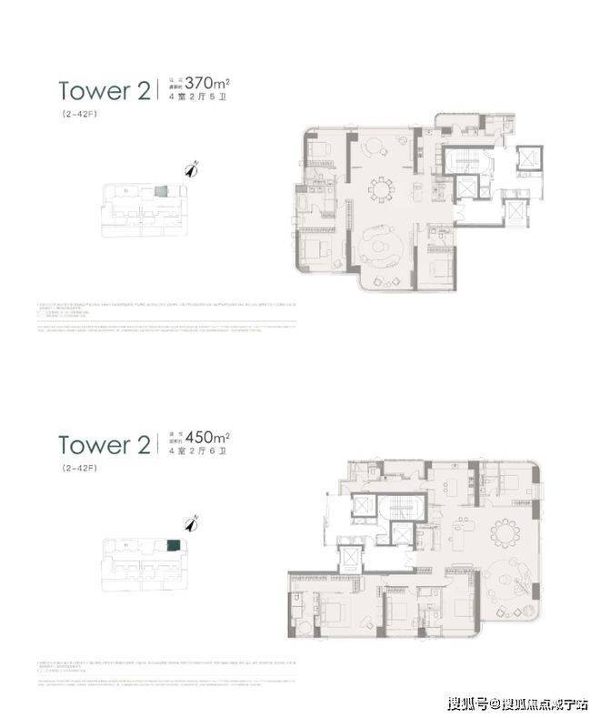 项目二期推售共两栋楼,T1栋主要由360㎡户型构成,T2栋更靠外滩和黄浦江主要由450㎡户型构成.