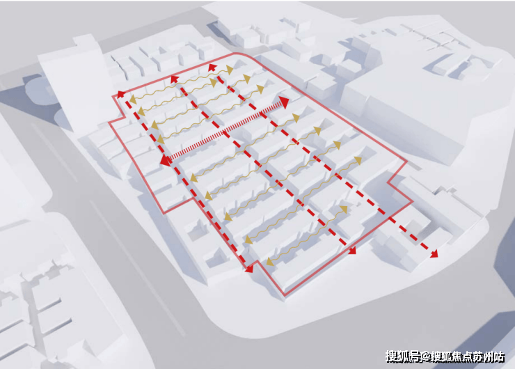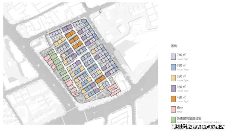 另外,从组团上看,分为历史保护组团、内部组团、沿街组团: