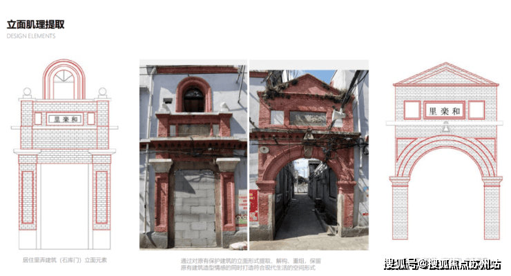 由于项目“历史风貌街区”的特殊属性,区域将沿袭“总弄-支弄”的里弄风貌肌理,现有的历史建筑实施“留改拆”方式,可采用规划保留或拆除复建方式予以更新,建筑立面不宜变,保留历史特色构建。