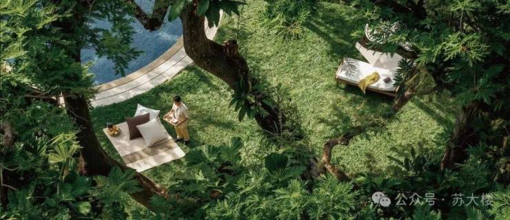 红线内外一体化开发,打造约1万方亲水景观带,L型滨水河畔公园(申报中),实现从公园里回家,借由抬板进一步打造新加坡风情立体园林,实现「下沉庭院-板上游园-洄游景廊-阳台观景」四重景观体验。