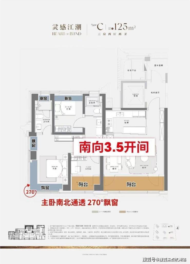 南向3.5开间+双阳台+270°转角飘窗,让该户型的采光性能、空间通透感几乎做到极致!