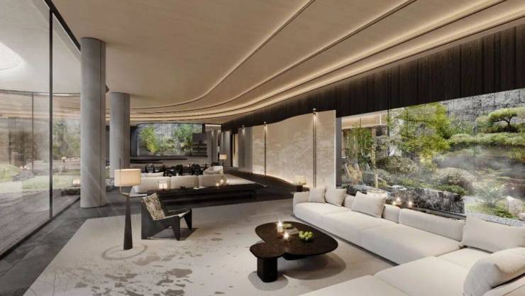 【怀山望】塑造"公园旁"到"公园里"的绿色生态社区,并通过会所设计打造友好开放的创新性社区界面,以优圆弧线条、经典温润材质及精致细部设计打造新型海派建筑气韵.