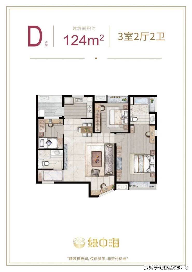 建面约124平 3房2厅2卫