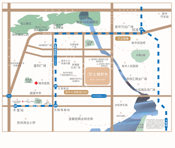 上城时光售楼处电话:400-8828-814【售楼处电话】建筑只有与人发生联系的时候,才能呈现出最佳的社区生活择址吴中太湖新城太湖岸线旁,占据一线湖居美景,天然成就“鱼跃龙门”之相,一窗之内,天赋大美,纵览一线千米湖景,近享4A级石湖景区、4A级旺山景区等自然资源,鲜氧四季风华。