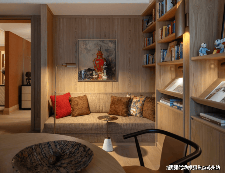 可坐可卧的软塌,让书房升级为舒适安逸的精神领地。一杯咖啡,一本好书,一张黑胶,消磨一段悠闲的午后时光。