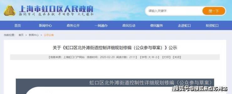 2020年2月20日公示了关于《虹口区北外滩街道控制详细规划修编(公示参与草案)》。
