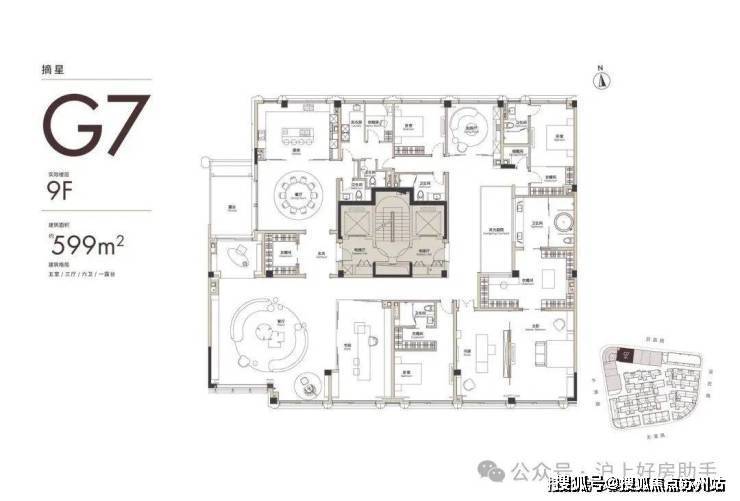 建面408㎡大平层南向面宽26.8米,得房率89%