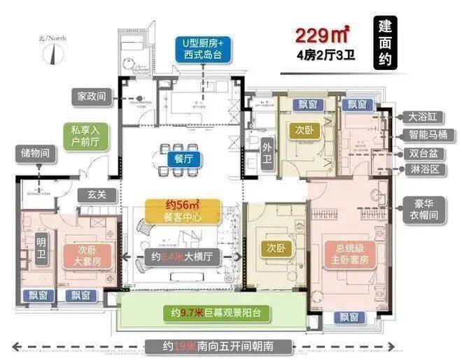 约19米纯粹瞰景面+近约10米的IMAX级超级阳台+约56m²餐客厅空间+约3.15m层高,做出别墅才有的立体复合空间,打开名流专属的城市领空.