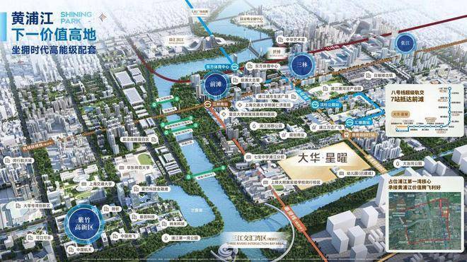 位于闵行浦江镇。距离地铁8号线约1.4公里;浦星公路可直达前滩,未来规划中的19号线将提升通勤效率。