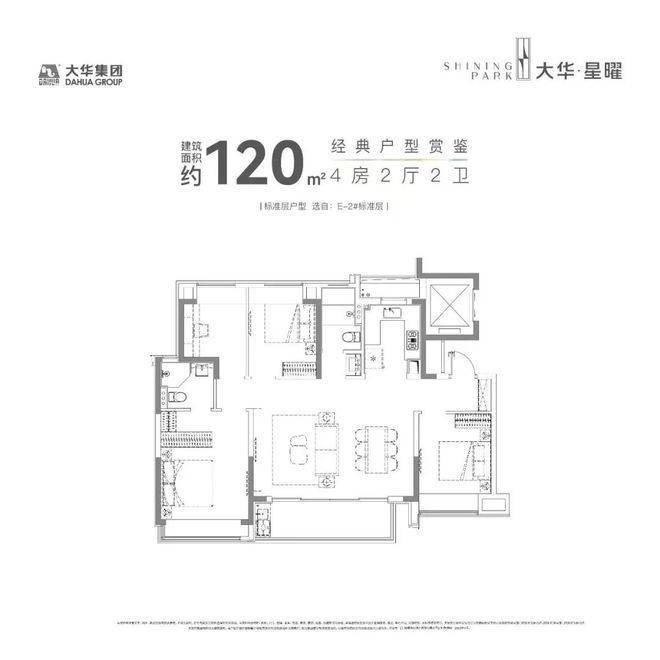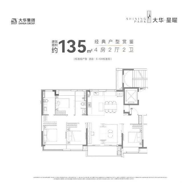 120-135㎡四房:四开间朝南,大横厅布局。