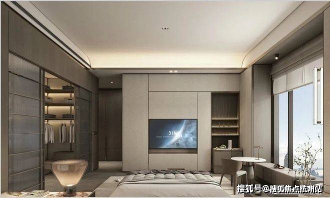 星级套房主卧,配备南北双飘窗+步入式衣帽间+独立卫浴,舒适度与私密性兼具!