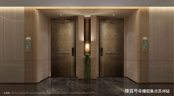 除了架空层外,整个项目的公区从入户门头开始,一直到电梯。电梯厅甚至是标准层公区,全部都采用了星级酒店式的标准,给业主更尊贵的归家体验。