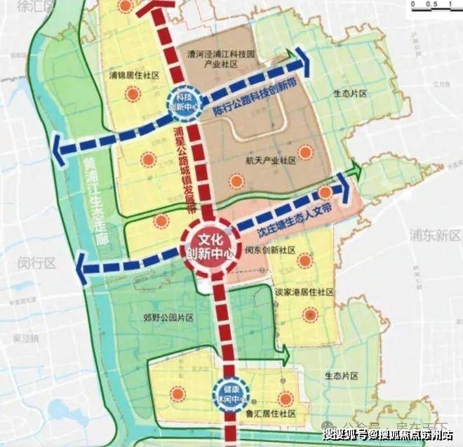 但浦江的未来潜力,不局限于如此。2035规划中,浦江镇定义为闵行中心城区,打造“一廊三带三心”空间布局: