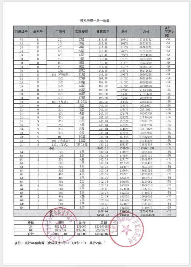 2024年11月30日推出3号、6号共计:44套。面积段:102-498平米。销售均价:13.9万/平米。