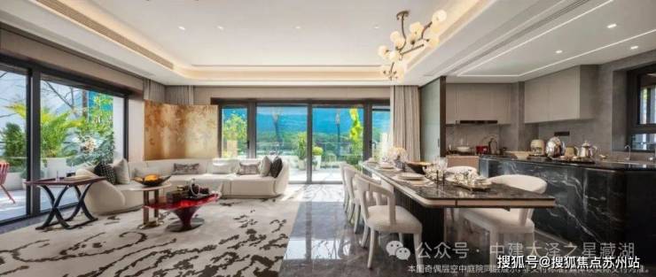 部分户型的空中庭院采用了 约270°环幕视野的设计,打破了传统住宅的单面观景局限,可以尽可能的放大景观视野,让太湖的万千气象以及社区园林的四季景观尽收眼底——春日的烟波浩渺,夏日的荷花摇曳,秋日的层林尽染,冬日的薄雾轻笼,皆成为家中流动的风景画。