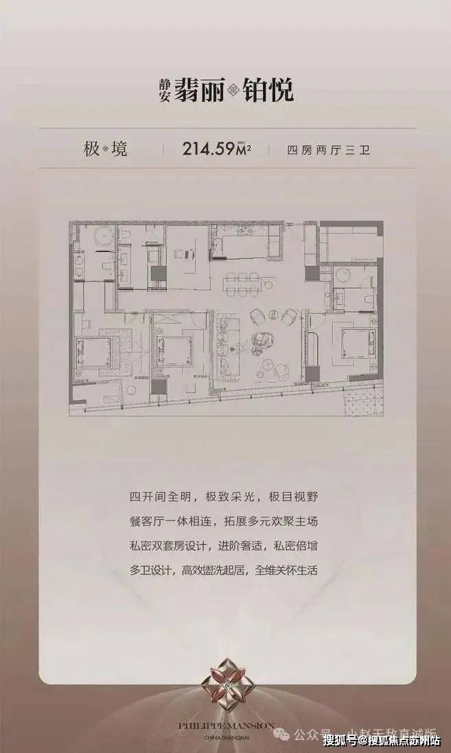 -极境214㎡:4房双套房,四开间全明采光,餐客厅一体化拓展社交主场。上海静安翡丽铂悦售楼处电话☎:400-8123-664【开发商售楼处预约看房热线】(一对一热情vip服务)区位:静安大宁国际商业广场