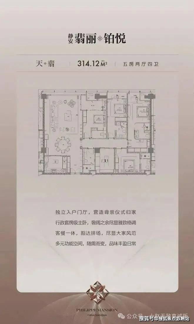 -天翡314㎡:5房2厅4卫,独立入户门厅+行政级主卧套房,客餐一体设计彰显大宅风范。